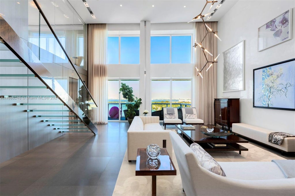 No expense was spared in this one-of-a kind 2 story home in the sky. Enjoy panoramic views of Biscayne Bay, downtown Miami & the ocean from this exquisitely designed & meticulously combined double PH. This 6BR/6BA 6,422sf masterpiece boasts top of the line finishes, 22’ ceilings, Savant smart home system, Kreon lighting, breathtaking glass staircase, open kitchen w/ custom cabinetry, Balsatina stone & wood flooring, 2 master suites w/ morning kitchens, Pneumatic elevator & 5 parking spaces. This exceptional residence offers the ultimate indoor-outdoor living w/3 private terraces & floor to ceiling windows throughout. Luxurious boutique building w/unrivaled amenities including brand new resort style pool w/outdoor kitchen, state of the art fitness center, tennis court & 24/7concierge.