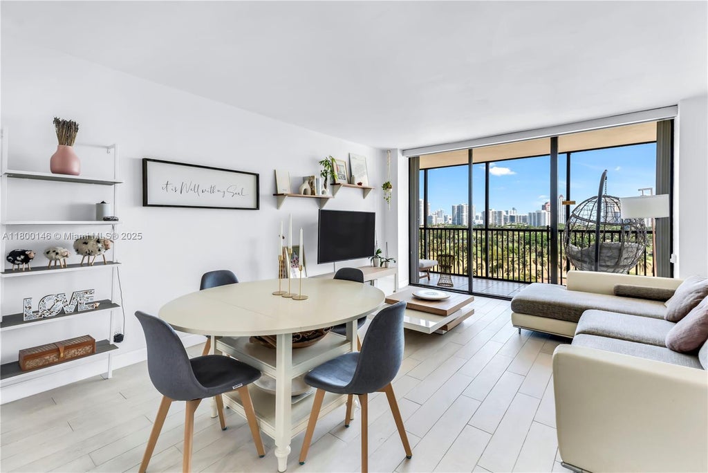 FULLY UPDATED 1BR/1.5BA unit with stunning panoramic views of golf course, city line & pool! This bright and spacious condo features MODERN AND OPEN KITCHEN WITH QUARTZ COUNTER TOPS & STAINLESS STEEL APPLIACNCES, sleek porcelain tile floors throughout, freshly painted interiors, UPDATED bathrooms ALL IMPACT WINDOWS AND SLINDING GLASS W/ BLACKOUT ELECTRIC BLINDS. A/C 2024! Includes 24/7 security, with a renovated lobby and hallways, covered garage parking, and unlimited guest parking. Amenities include pool, sauna, jacuzzi, gym, clubhouse, card room, and library. Maintenance covers water, cable, flood insurance, fumigation, and assigned garage parking. Walk to Aventura Mall, restaurants, houses of worship, and the 3-mile path. Easy access to I-95 and future Brightline station.