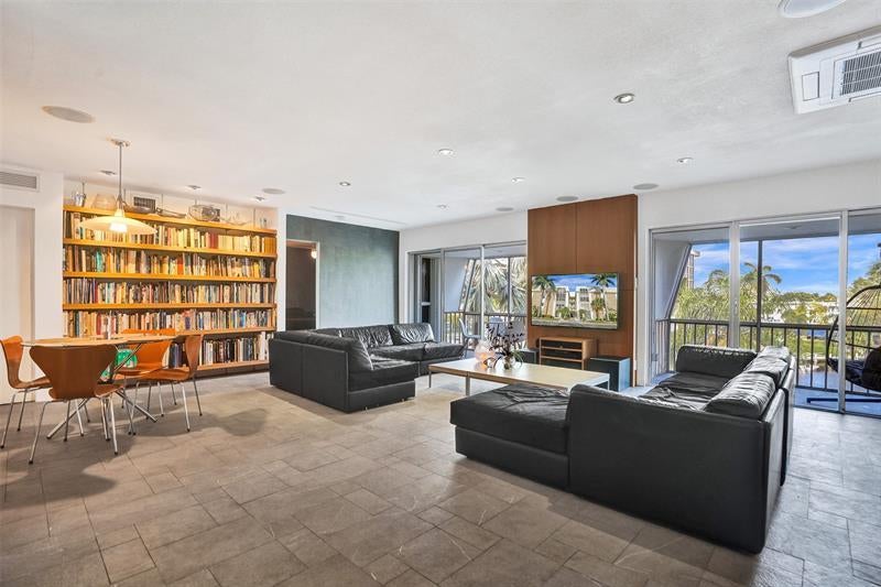 Rare 1200sf unit (only 4 in building) offers an expansive great room with breathtaking views of the Middle River. Enjoy a prime location just five minutes to Wilton Drive and 10 minutes to the beach. Featuring a gourmet kitchen, double balcony, and an oversized 5x7 party shower in the primary bath, this home is designed for both luxury & entertainment. Italian porcelain tile floors & accent walls add a sophisticated touch, while a 7.2 theater-quality surround sound system enhances your living experience. The community boasts a Johnny Weissmuller-designed pool, tennis courts, free boat dockage. Unit comes w/ 2 parking spaces and 3 storage units. Pets welcome! The building has passed 50-year and SIRS. An adjacent 1-bedroom unit is available, perfect for a guest or in-law suite.