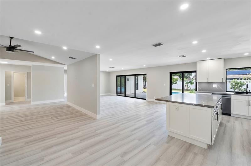 SELLER WILLING TO HELP BUY DOWN YOUR RATE. ALL IMPACT WINDOWS/DOORS! NO HOA! Large Lot- Stunning, completely remodeled 3 bed 2 bath, pool home w/ bonus room in a great location in Coral Springs. Gorgeous kitchen w/huge quartz island w/storage. Plenty of cabinets and a pantry. New sleek black appliances. New recessed lighting throughout. New electrical panel. New flat roof. Large open floor plan overlooks the pool and large fully fenced yard. Pool was just resurfaced, new pool pump and piping. Large primary bedroom w/walk-in closet and beautifully remodeled bathroom. Guest bathroom updated with lovely glass enclosure and vanity. Guest bedrooms are nicely sized, and one features a bonus room. Laundry room w/new washer and dryer. Garage has an AC split w/remote. Quiet street on a cul-de-sac.