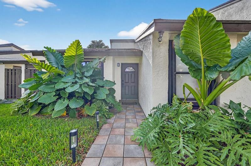 Beautifully remodeled 2 bed 2 bath one story townhome inside the desired Woodgate Community. Featuring high end finishes throughout, a modern granite kitchen with snack/bar counter, stainless steel appliances. Both bathrooms boast sleek porcelain tile and mediterranean style vanities. Porcelain tiles throughout the home, large windows let in the natural sunlight with zebra blinds with blackout shades in the spacious bedrooms for optimized temperature control. Indoor laundry, accordion shutters throughout, concrete backyard with a privacy wood fence, exterior storage and tons of mature foliage. Bonus feature property has an attic ladder with ample storage space. Low HOA fee that includes community pool, tennis courts and all exterior painting including driveway. With A rated schools nearby!